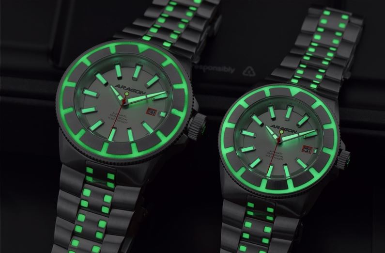 ARAGON Bioluminescence White-Green 50mm Automatic