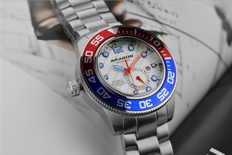 ARAGON Divemaster III 50mm White-Blue-Red Automatic Steel Lefty