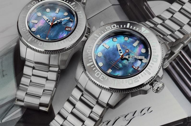 Die Aragon Divemaster II 45mm MOP Automatic kombiniert kraftvolle Diver-Gene mit eleganter Perlmutt-Ästhetik – eine ausdrucksstarke und zuverlässige Uhr für Abenteurer, Sammler und Fans außergewöhnlicher Zeitmesser.