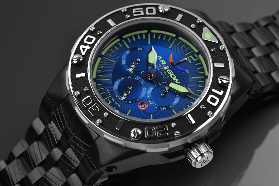 ARAGON Enforcer Chronograph 1000 Blue Black IP Automatic