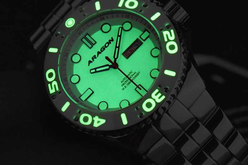 Und die heißt Aragon Enforcer Lume 50mm.Ein weißes Zifferblatt mit klaren Strukturen in der Ablesbarkeit und Super Luminous.Eine tolle Variante ist der Zweiknopf Gleitverschluss-Faltschließe mit dieser das Edelstahlband verlängert werden.Das Armband ist hochpoliert und schmiegt sich sehr schön ans Handgelenk.Die Uhr oder der ( Vollstrecker) ist mit 311gr.und 50mm wirklich beeindruckend. Das ganze noch mit einem Saphirglas-100 ATM und dem Uhrwerk NH36 worauf man sich verlassen kann.Als Uhrensammler bin ich sehr froh das ich diese Marke gefunden habe. Ich kann diese sehr schönen Uhren wirklich weiter empfehlen.