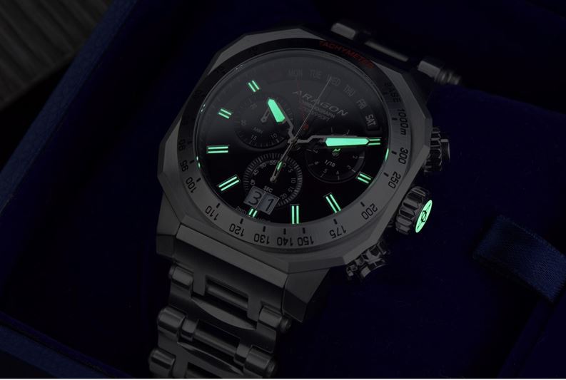 | Leuchtmasse*: | Krone, Stundenindexe, Super Luminous, Uhrenzeiger |