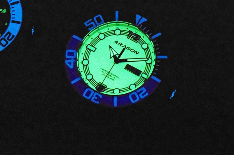 | Leuchtmasse: | Lünette, Stundenindexe, Uhrenzeiger, Zifferblatt |