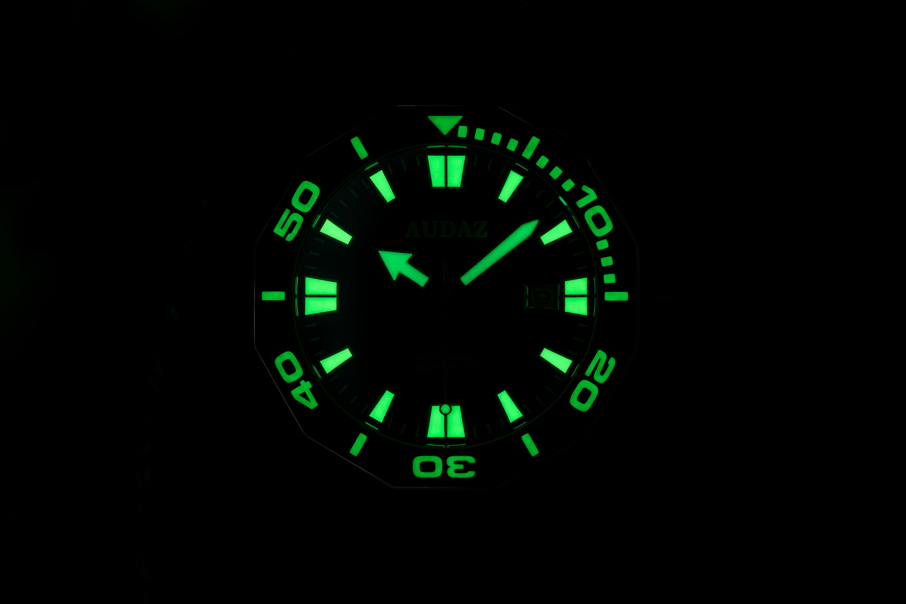 | Leuchtmasse: | Stundenindexe, Superluminova, Uhrenzeiger |