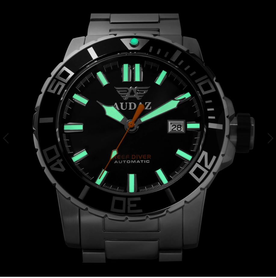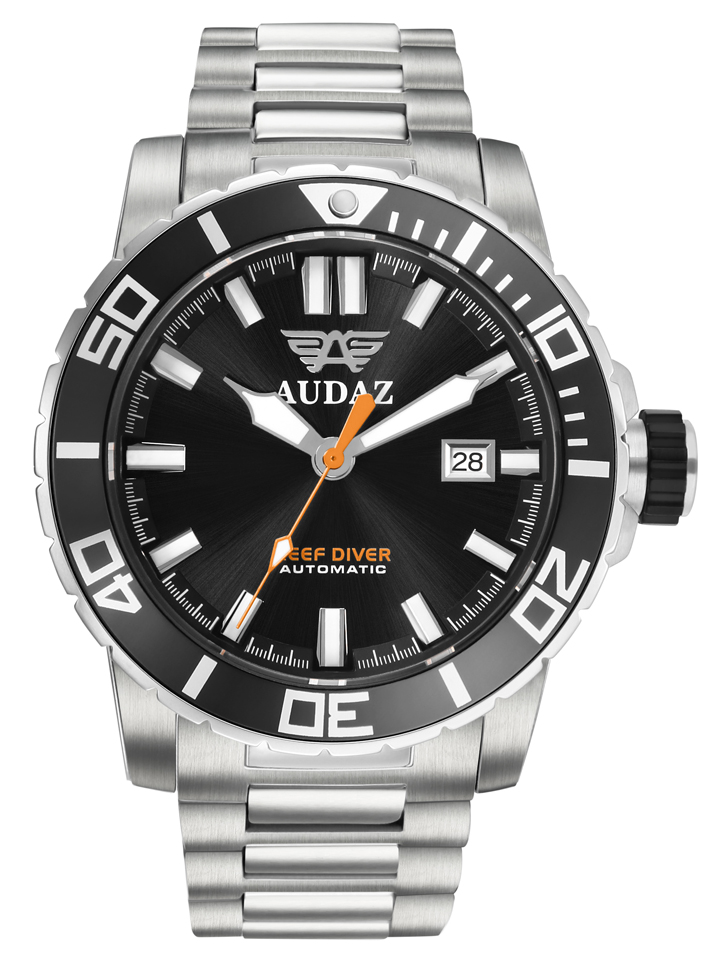 Audaz Reef Diver Swiss Black 45mm Automatic inkl. Gummiarmband