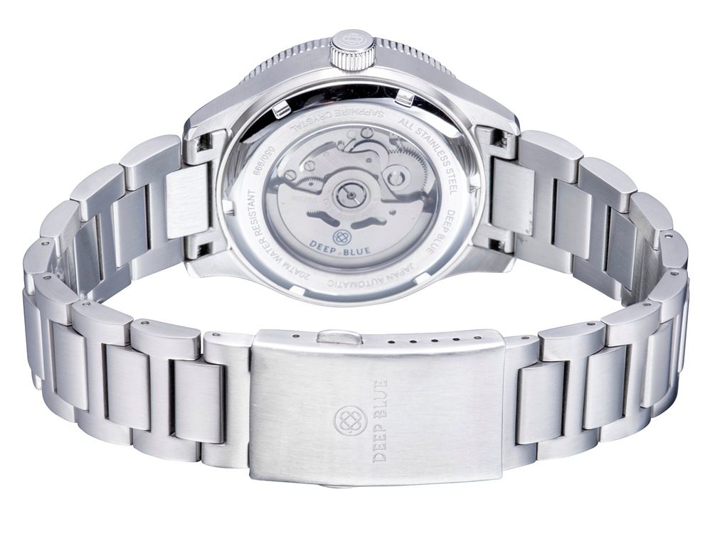 Die einseitig drehbare Lünette aus Saphirglas, das massive Edelstahl-Armband mit Sicherheitsfaltschließe und die 20 mm Stegbreite unterstreichen den robusten Charakter der Taucheruhr. Die Uhr verfügt zudem über eine Datumsanzeige (Monatstag) und einen Sichtboden, der einen Einblick in das hochwertige Automatikwerk ermöglicht.