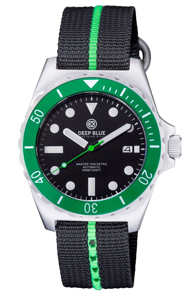 Deep Blue Master 1000 Retro Black-Green 44mm Automatik Gummi-/Nylon-Armband