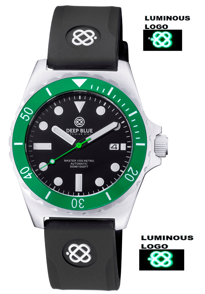 Produktinformationen "Deep Blue Master 1000 Retro Black-Green 44mm Automatik Gummi-/Nylon-Armband"