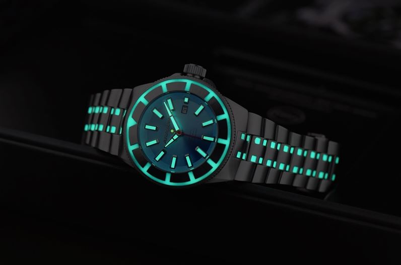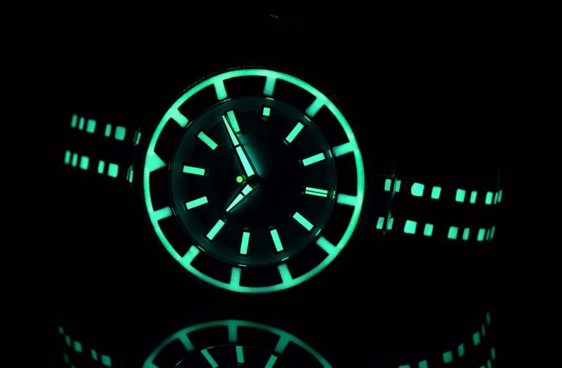 | Luminous material: | Gehäuse und Armband, Stundenindexe, Superluminova, Uhrenzeiger |