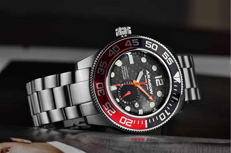 ARAGON Divemaster III 50mm Black-Red Automatic Steel Lefty