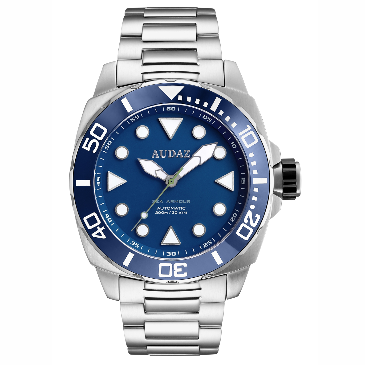 Die Audaz Sea Armour Blue verbindet präzises Automatikwerk, professionelle Taucherfunktionen und ein elegantes, sportliches Design – ideal für Abenteurer, Taucher und Liebhaber hochwertiger Uhren.