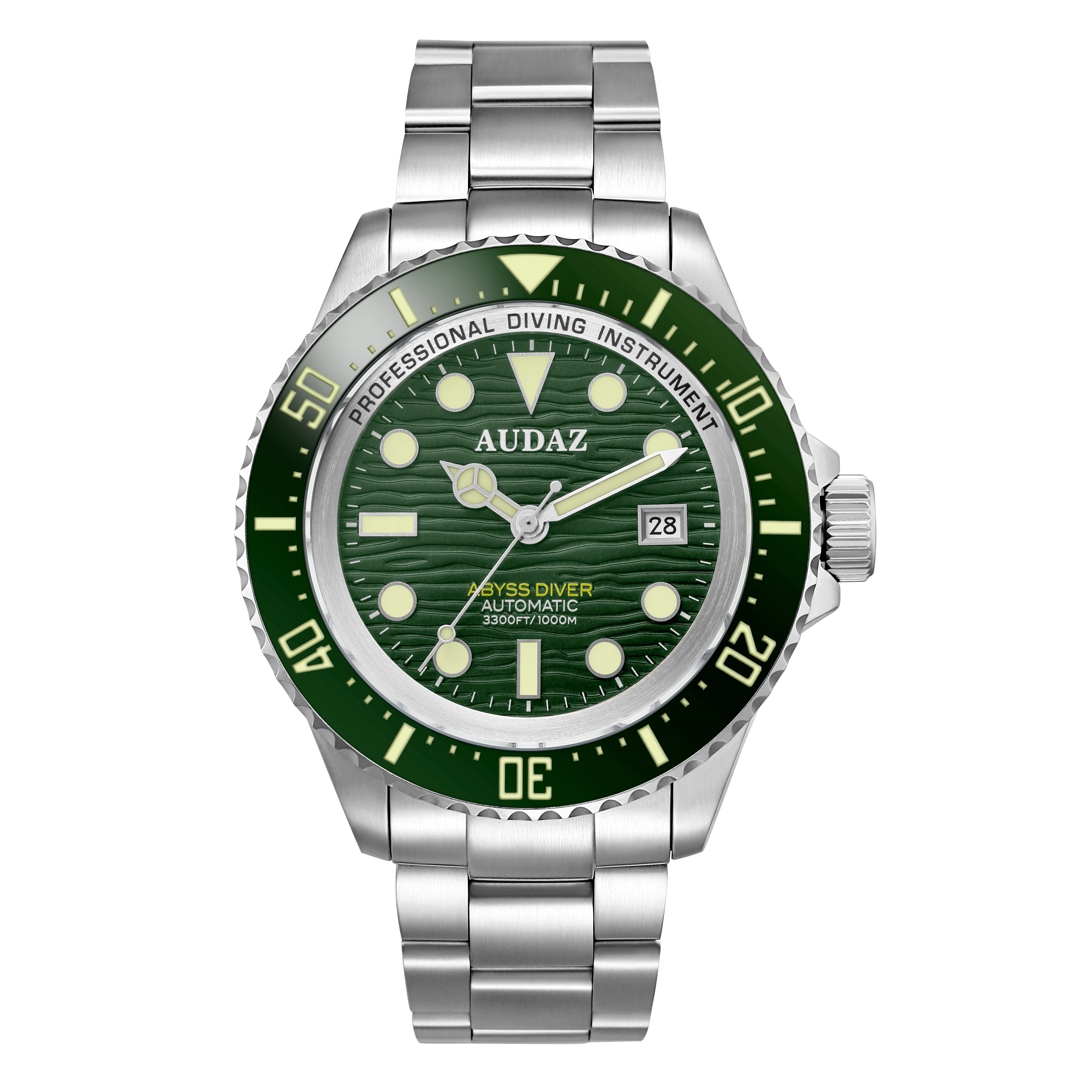 Die Audaz Abyss Diver Green II begeistert durch extreme Leistung, ein faszinierendes Wellenzifferblatt und hochwertige Verarbeitung – ein perfekter Begleiter für alle, die eine markante und zuverlässige Taucheruhr suchen.