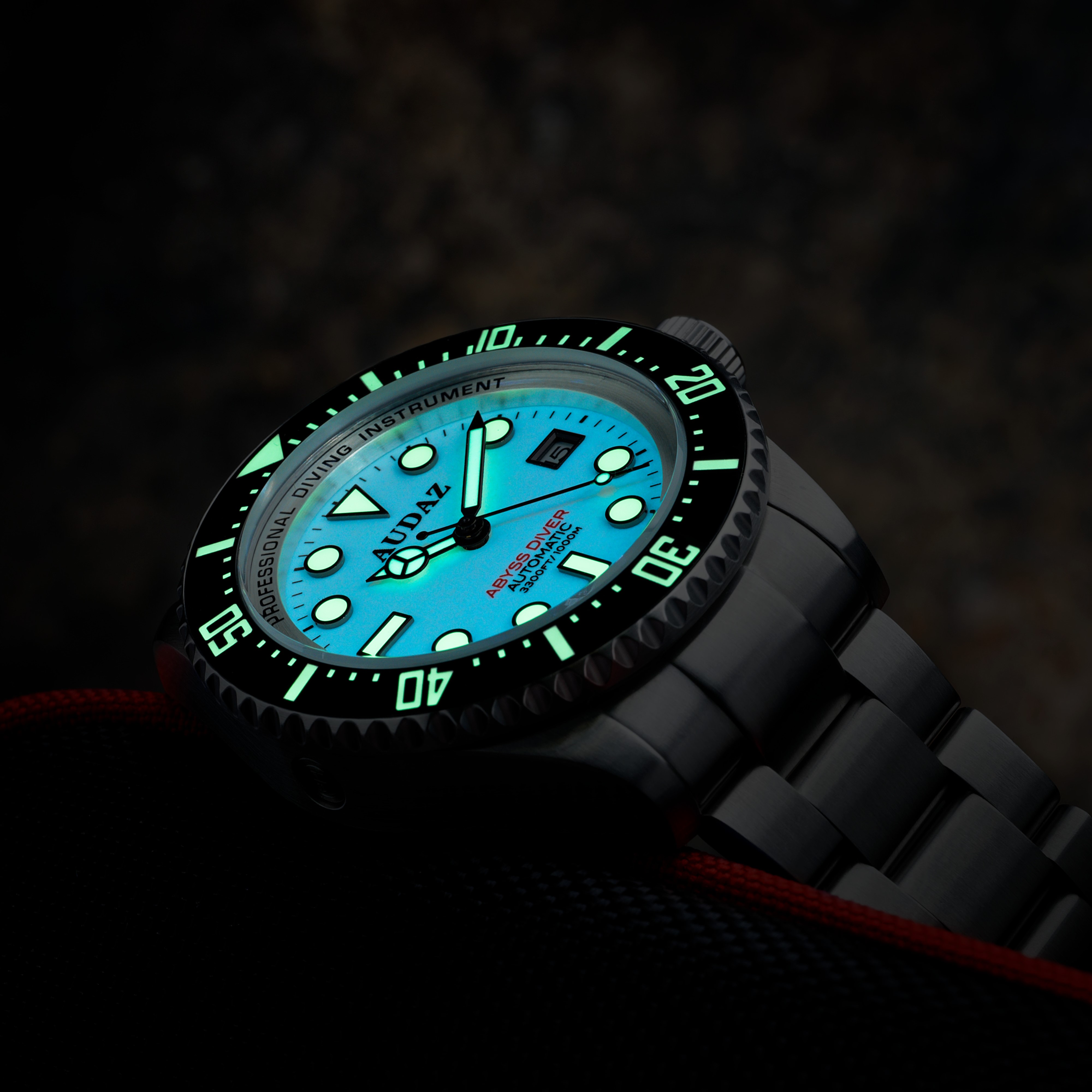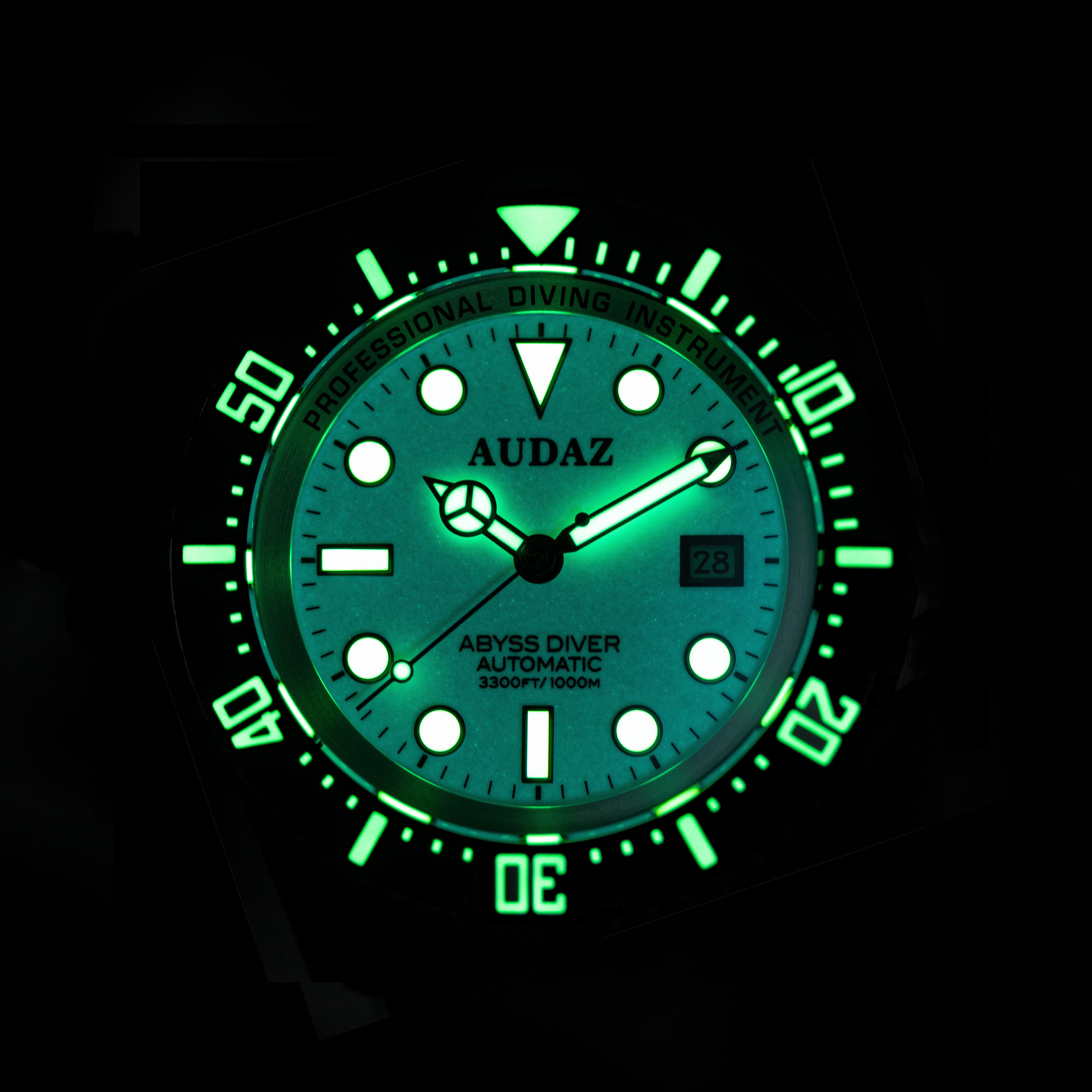 Produktbeschreibung – Audaz Abyss Diver White Lume 1000m Automatic (inkl. Gummiarmband)