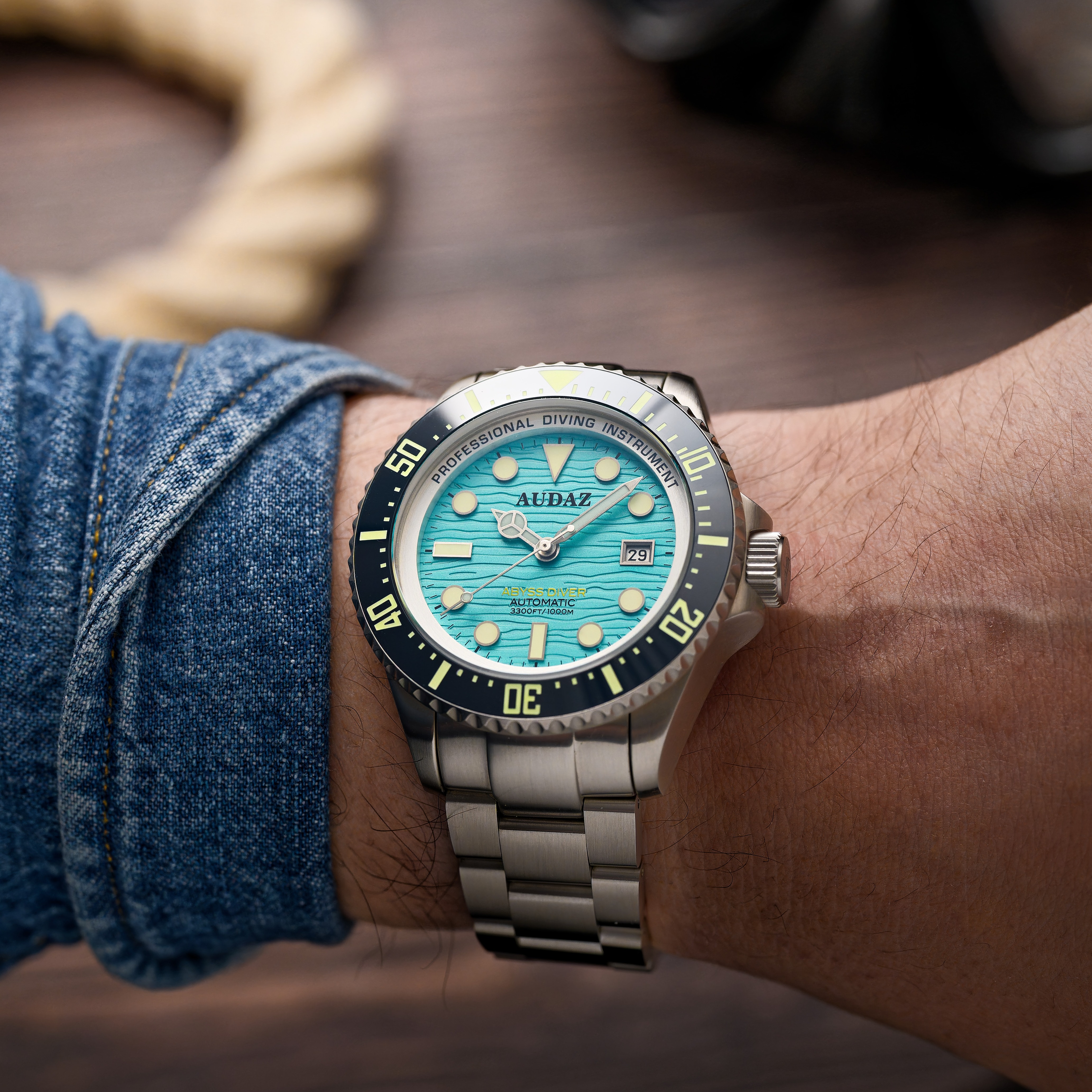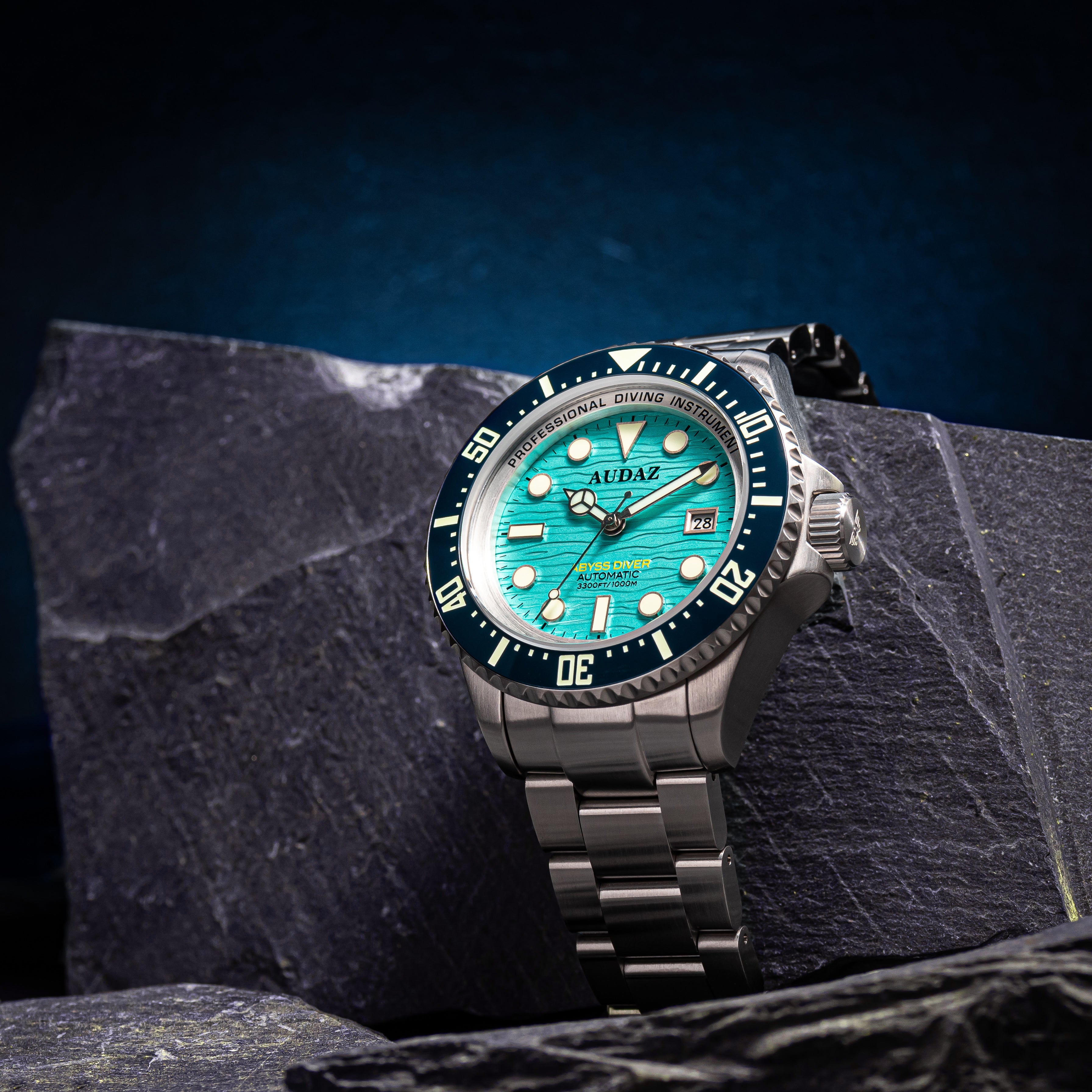 Die Audaz Abyss Diver Aqua Blue vereint extreme Leistung, hochwertige Technik und ein eindrucksvolles Farbdesign – ideal für Abenteurer, Taucher und Liebhaber markanter Automatikuhren.