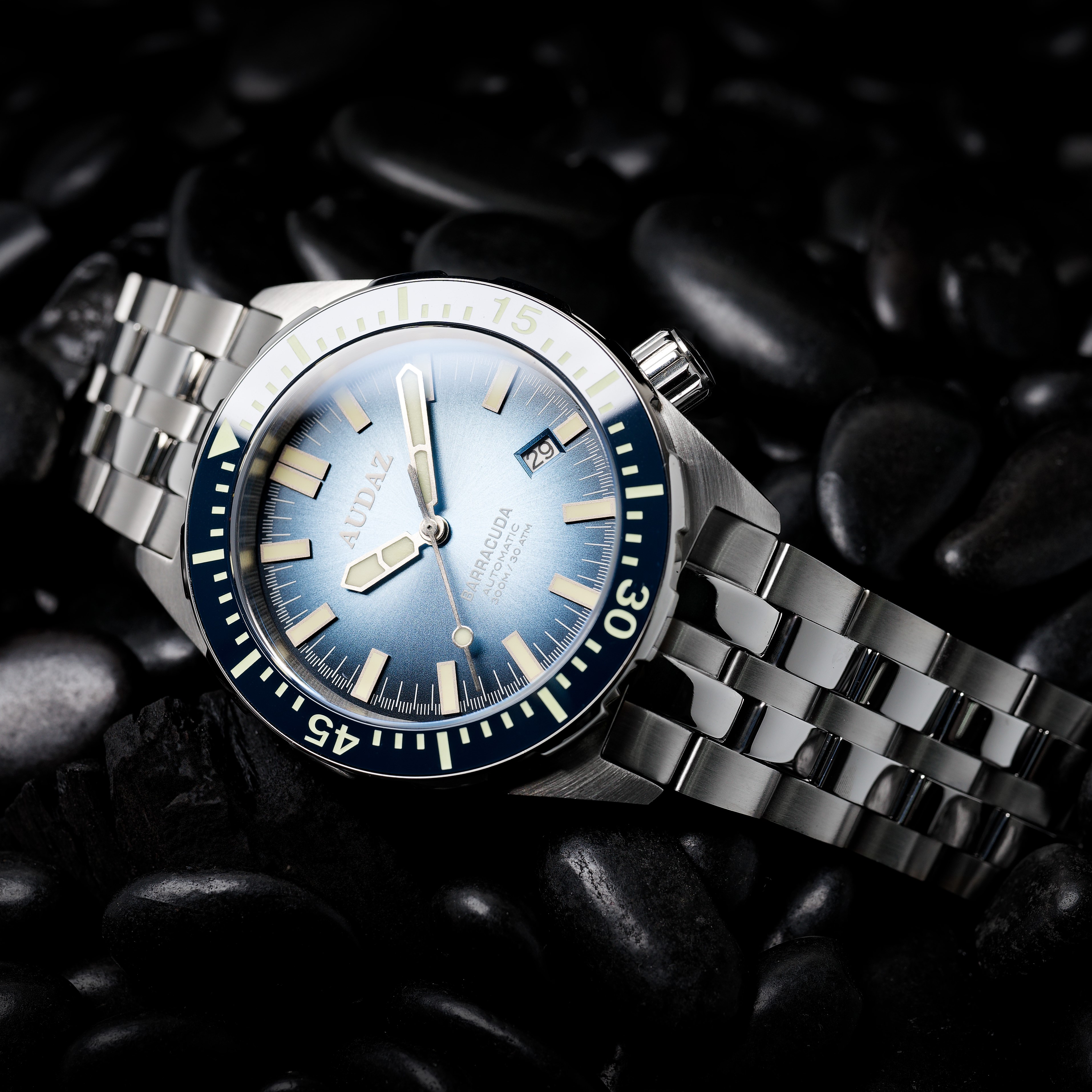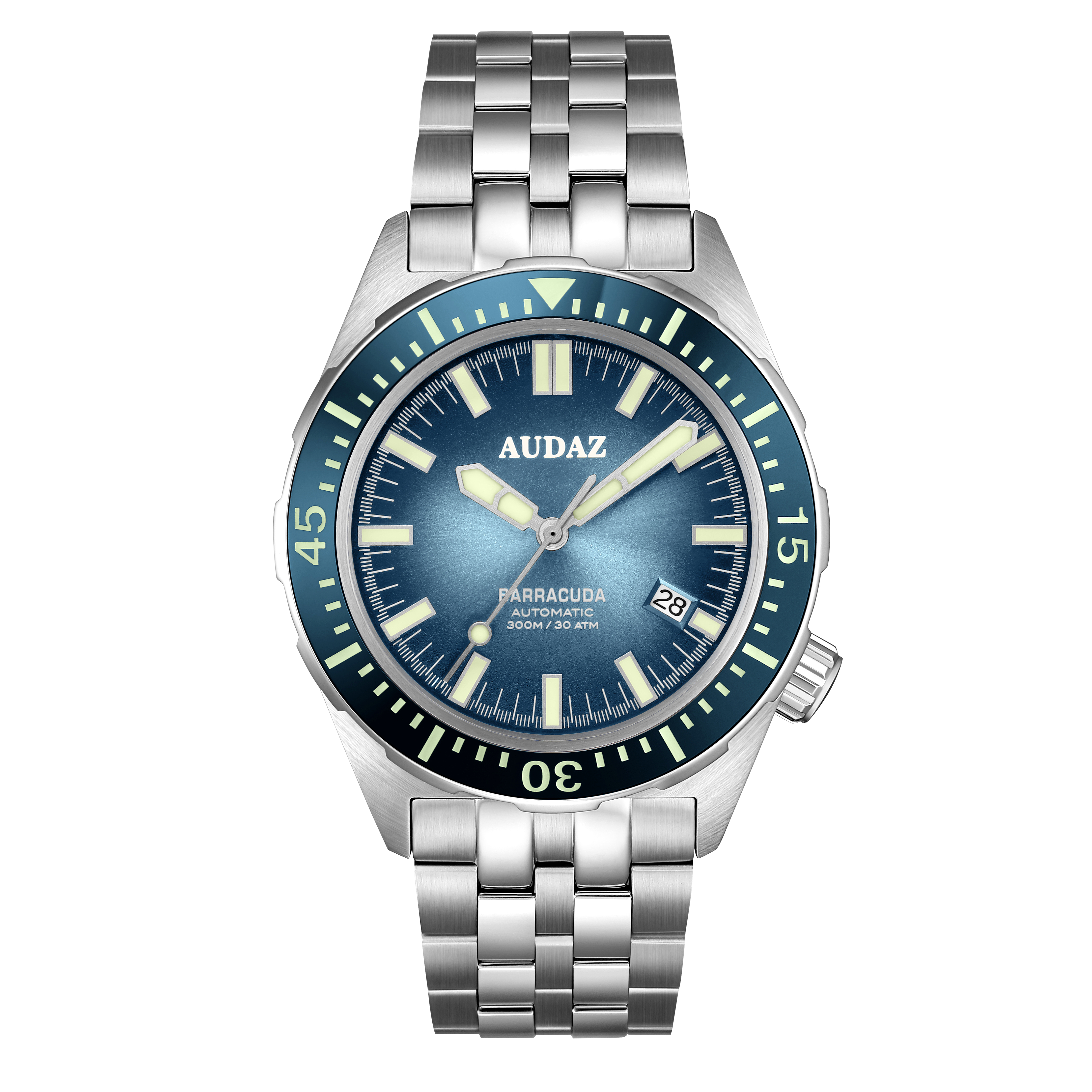 Die Audaz Barracuda Teal Blue vereint markantes Design, hochwertige Materialien und zuverlässige Technik – eine Uhr für alle, die Leistung und Stil in einer professionellen Taucheruhr suchen.