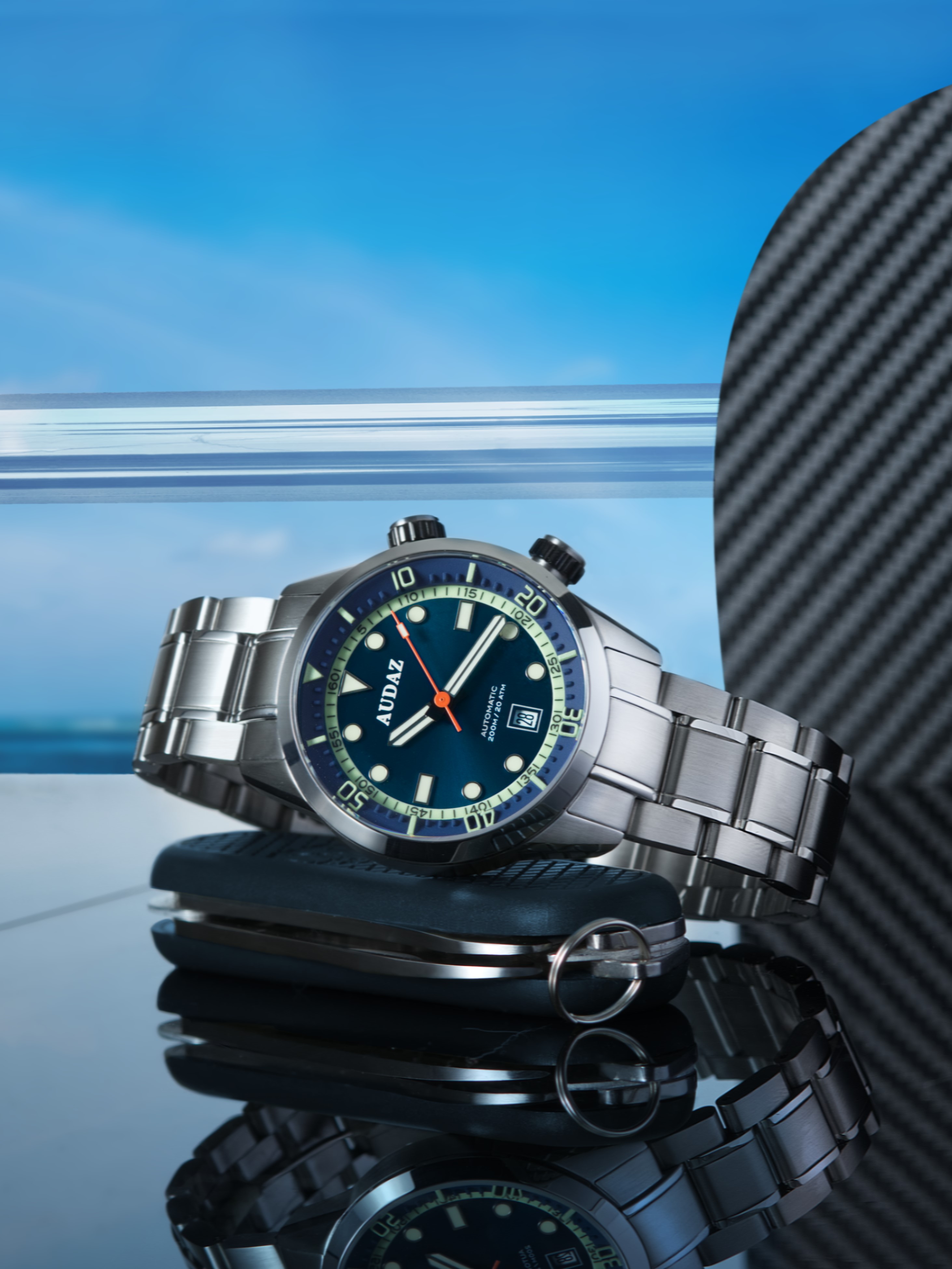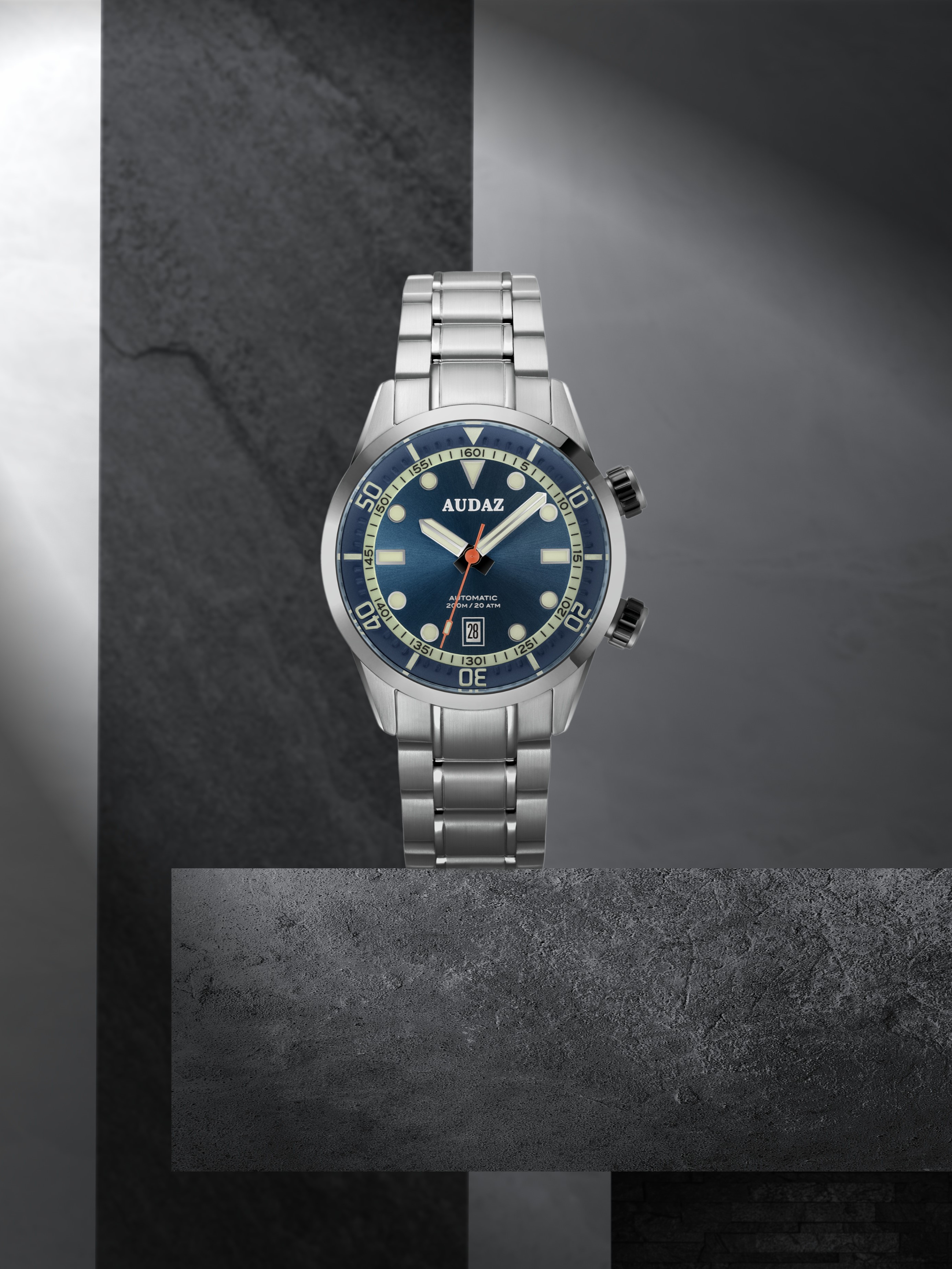 Die Audaz Seafarer Blue kombiniert präzises Automatikwerk, professionelle Diver-Funktionen und sportlich-elegantes Design – ideal für Abenteurer, Taucher und Liebhaber hochwertiger Automatikuhren.
