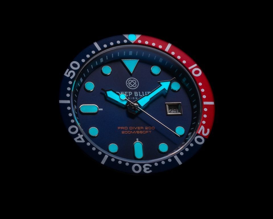 The Deep Blue Pro Diver 200 Blue is a robust and versatile dive watch designed for reliability, clarity, and everyday wear. Its 41 mm stainless steel case features a screw-down crown and screw-down case back, ensuring water resistance tested up to 200 meters (20 ATM), making it suitable for swimming, diving, and active use.