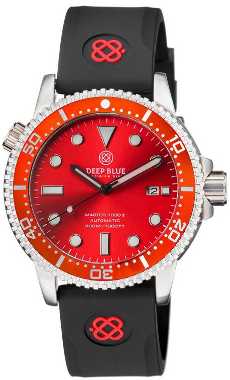 Deep Blue Master 1000 II, Red-Red, Red-Red diver watch, Red-Red bezel, red dial, automatic diver watch, 30 ATM watch, 300m waterproof, NH35 automatic, ceramic bezel, sapphire crystal, helium valve, stainless steel diver watch, 44mm diver watch, professional diver watch
