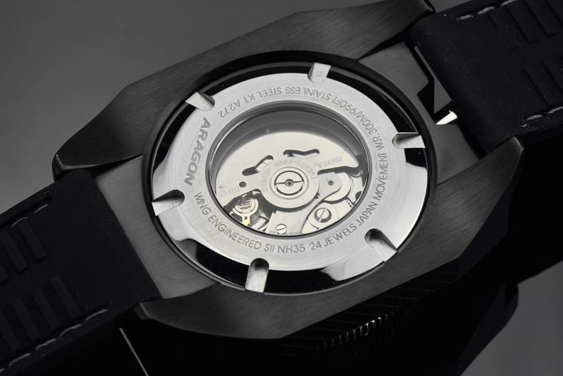 At its core beats the reliable SII NH35 automatic movement with 24 jewels. This caliber provides precise – ideal for travelers and professionals alike. The screw-down case back with exhibition window offers a clear view of the mechanical movement.