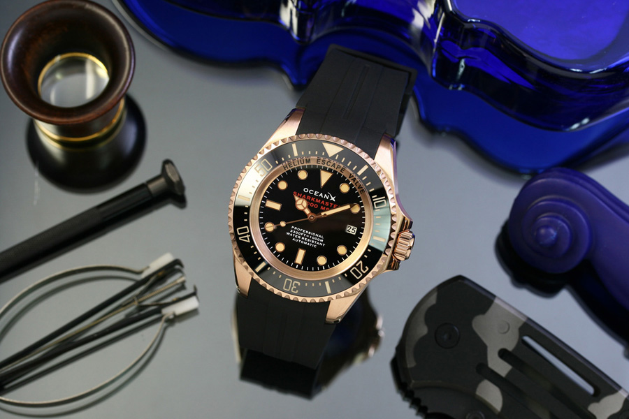 OceanX Sharkmaster 1000 M9 Black-Gold IP Automatic Rubber