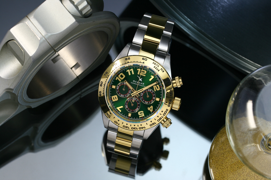 Eigenschaften "OceanX Speedracer II Chrono Green-Gold 41,5mm Herrenuhr"