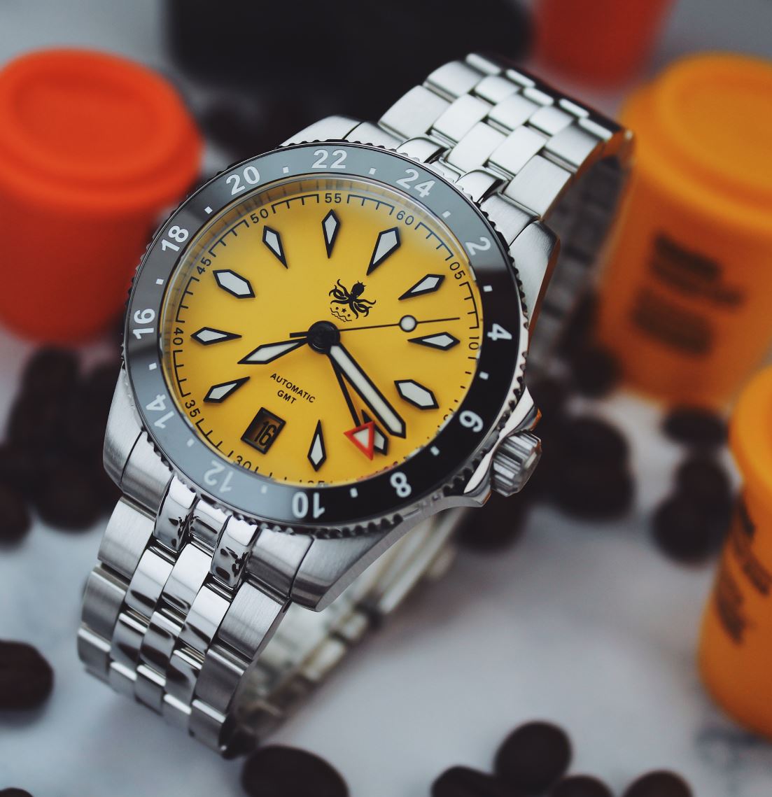 Phoibos Voyager GMT Canary Yellow 200m Diver Automatic