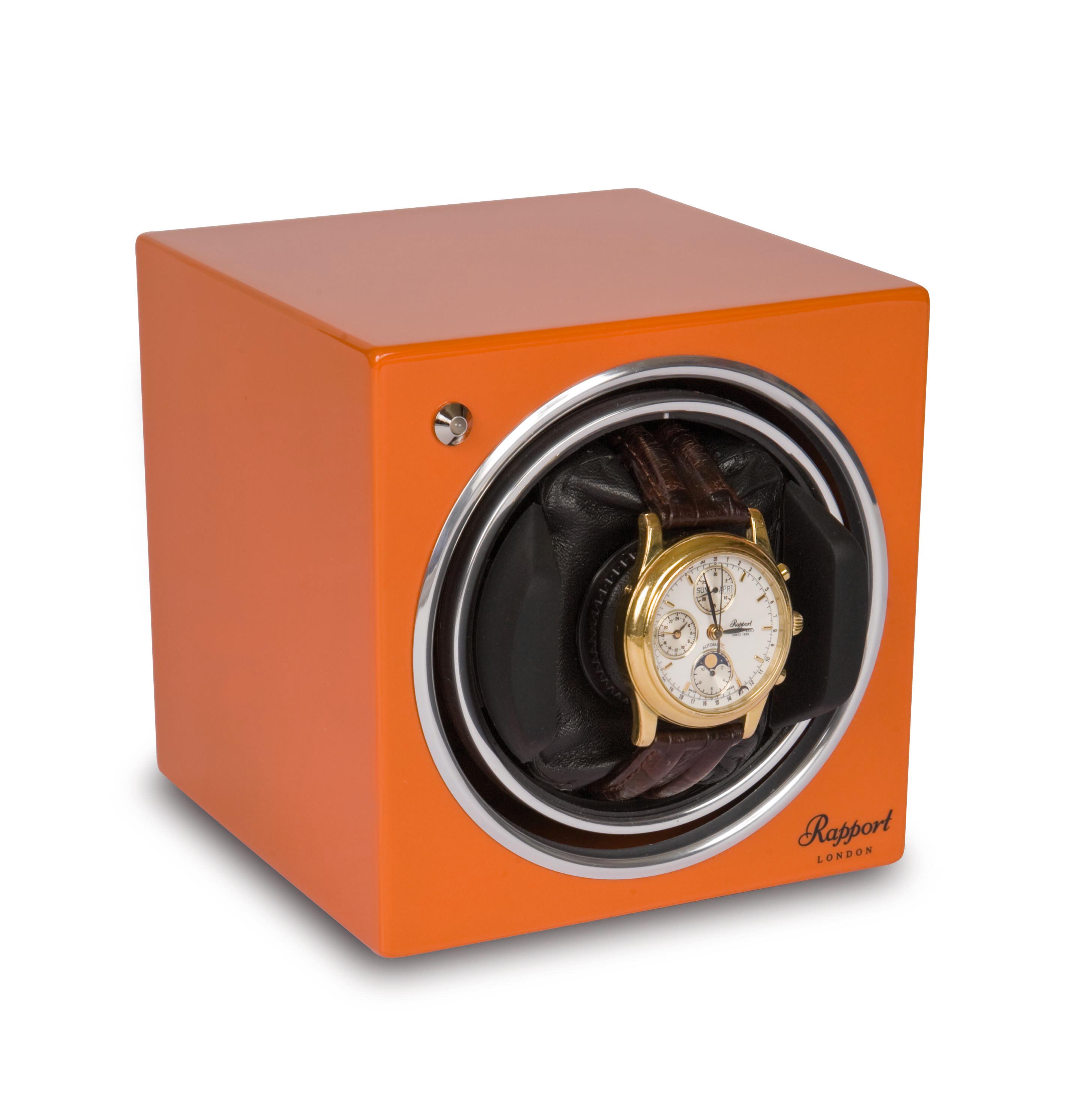 Ein Uhrenbeweger der Traditionsmarke Rapport London für eine Uhr. Optisch in einem klassichen quadratischen Design. Der Uhrenbeweger ist mit einer LED Kontrollleuchte ausgestattet. Optional ist der Betrieb mit Netz- oder Batteriebetrieb (Batterien nicht im Lieferumfang enthalten) möglich.