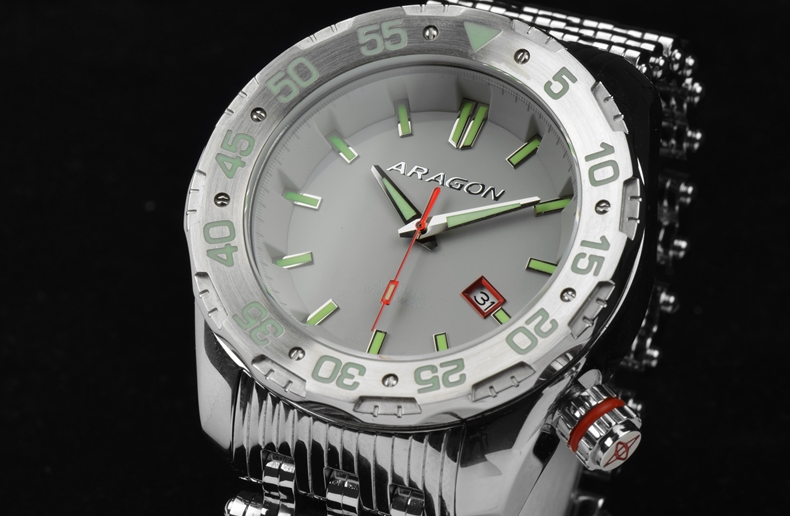 Meine Sea Charger in grau ist angekommen.Eine wunderschöne Uhr.Das Armband ist der besondere Knaller .Ein kinderspiel diese auf die passende Größe zu bekommen.Alles hoch poliert und macht sich hervorragend am Arm.Dieses ist meine 4.Aragon und wird nicht die letzte sein.Klare Kaufempfehlung.