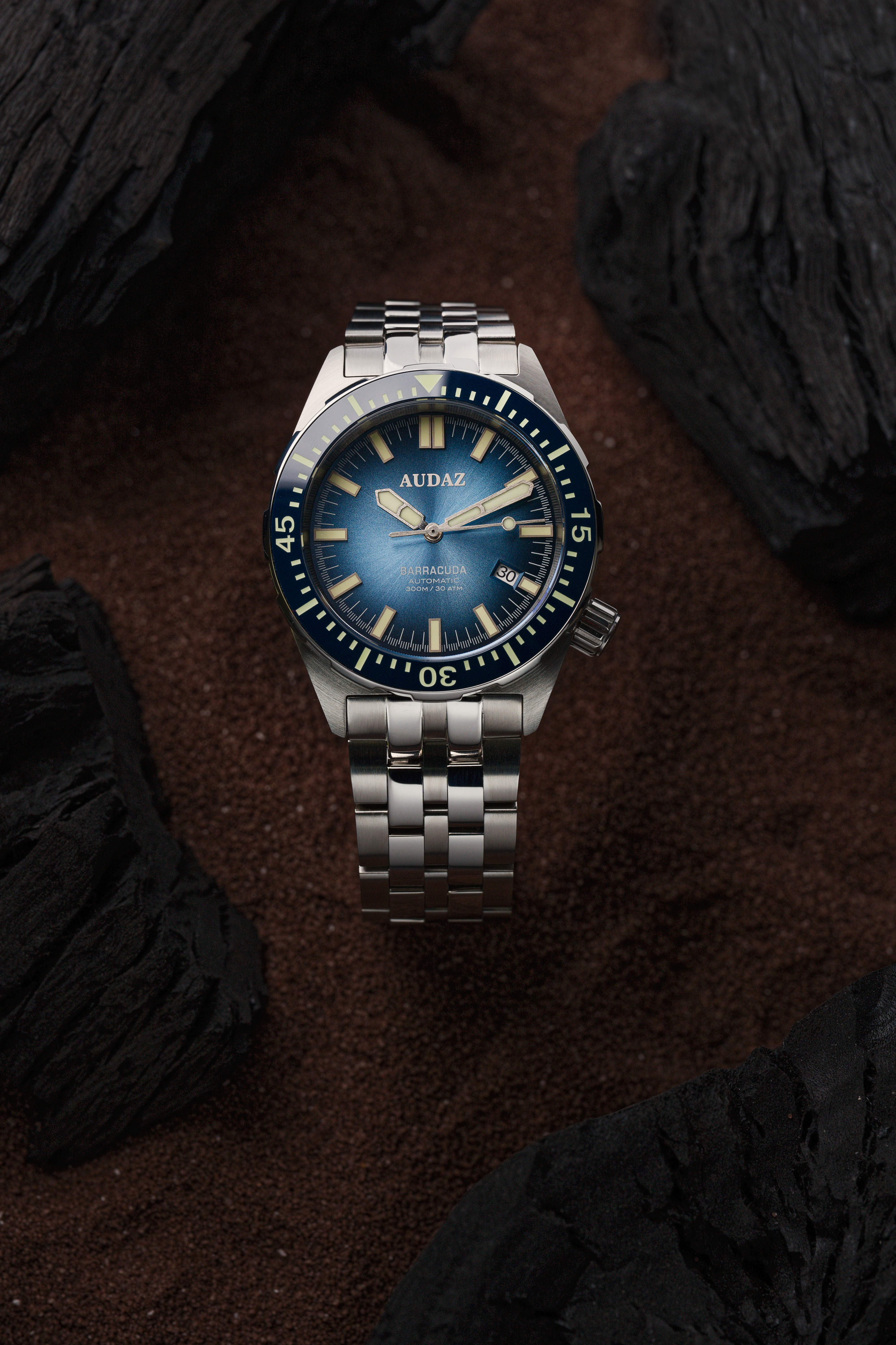 Die Audaz Barracuda Blue vereint markantes Design, hochwertige Materialien und zuverlässige Technik – eine Uhr für alle, die Leistung und Stil in einer professionellen Taucheruhr suchen.