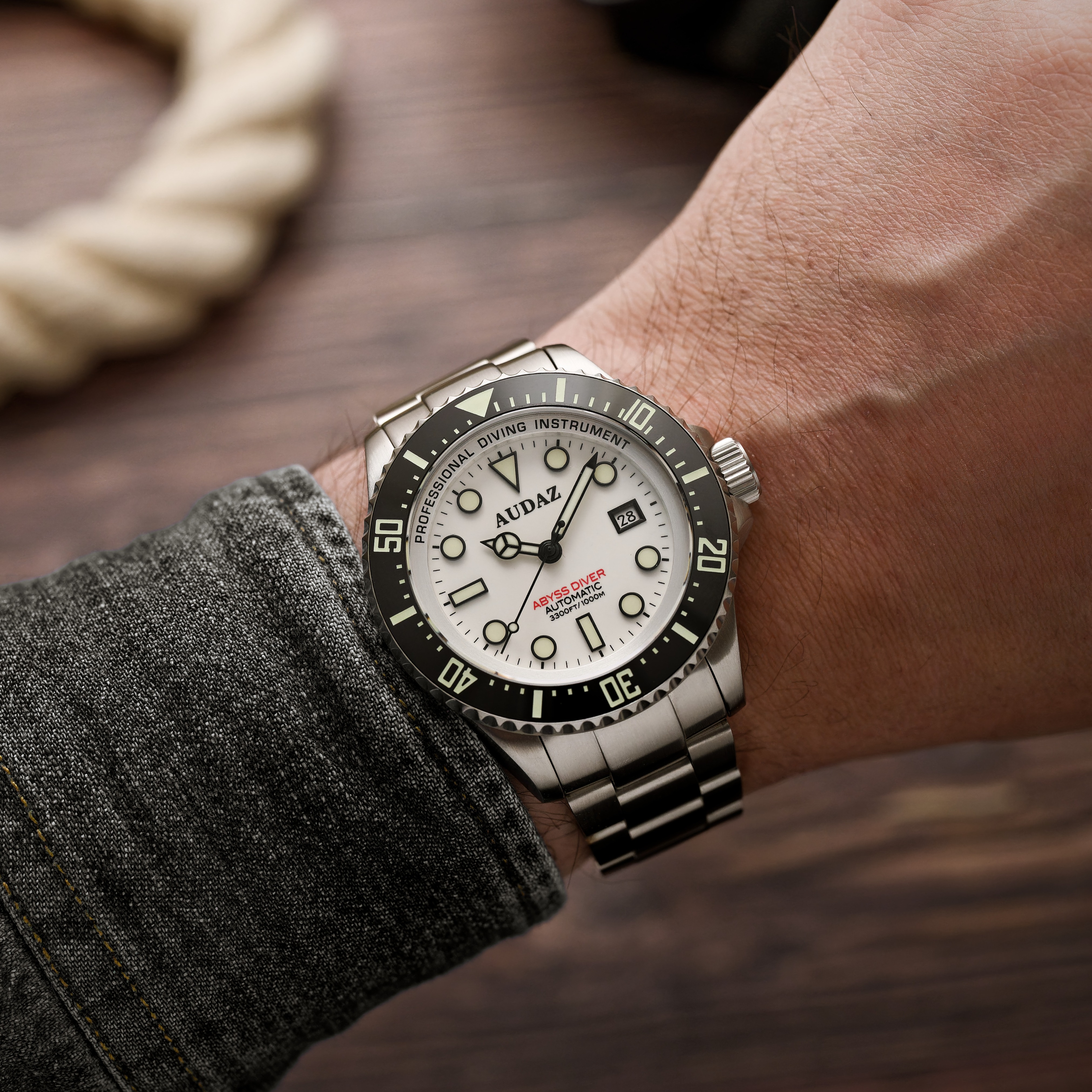 Die Audaz Abyss Diver White Lume ist die perfekte Wahl für Taucher, Abenteurer und Uhrliebhaber, die maximale Robustheit, extreme Leistung und ein markantes Lume-Design in einer einzigen, beeindruckenden Taucheruhr suchen.
