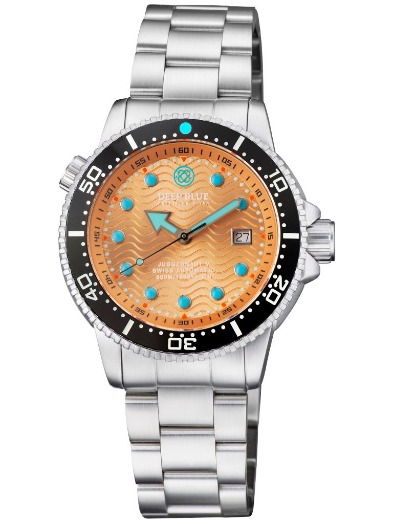 Die Deep Blue Juggernaut V Auto Salmon Orange 44mm ist die ideale Wahl für alle, die eine professionelle Taucheruhr mit auffälligem Zifferblatt, Heliumventil und hochwertigem Automatikwerk suchen.