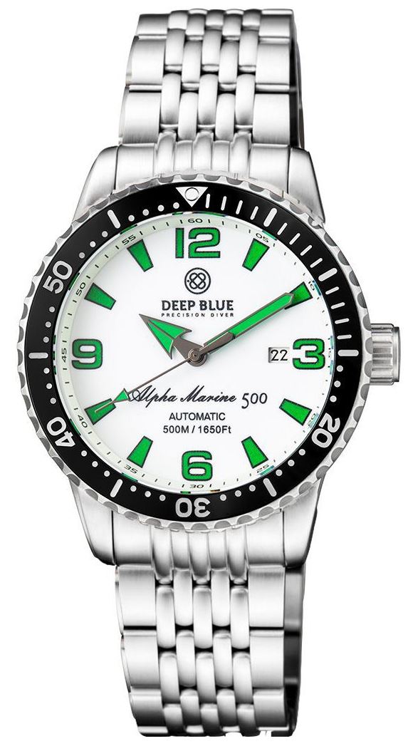 Deep Blue Pro Alpha Marine 500m 44mm Black-White Full White-Green Lume