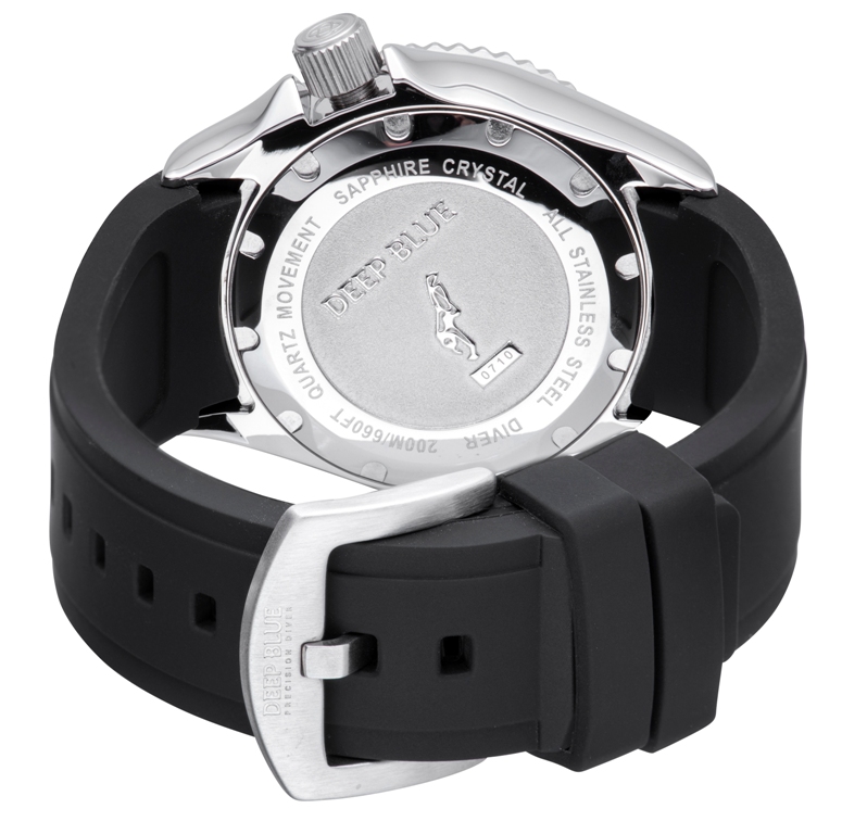 Das blaue Zifferblatt wird durch kratzfestes Saphirglas geschützt und bietet dank gut ablesbarer Stundenindizes sowie leuchtstarker Super-Luminova auf Zeigern und Indizes eine hervorragende Ablesbarkeit auch bei schlechten Lichtverhältnissen. Die einseitig drehbare Lünette unterstreicht den klassischen Diver-Charakter der Uhr.