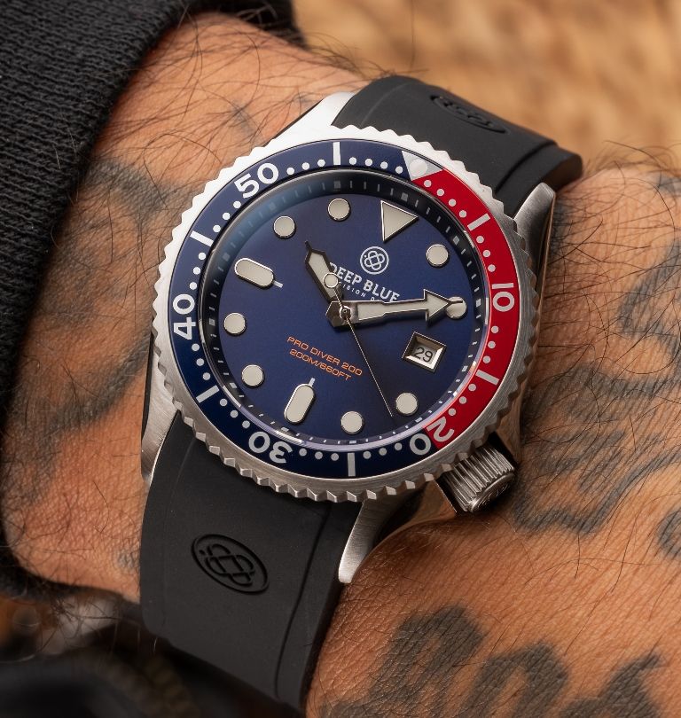 Die Deep Blue Pro Diver 200 Blue ist eine sportliche Taucheruhr, die Funktionalität, Robustheit und zeitloses Design vereint. Das 41 mm große Edelstahlgehäuse mit verschraubtem Gehäuseboden und verschraubter Krone sorgt für hohe Widerstandsfähigkeit und eine geprüfte Wasserdichtigkeit bis 20 ATM, wodurch sich die Uhr ideal für Wassersport und den täglichen Einsatz eignet.