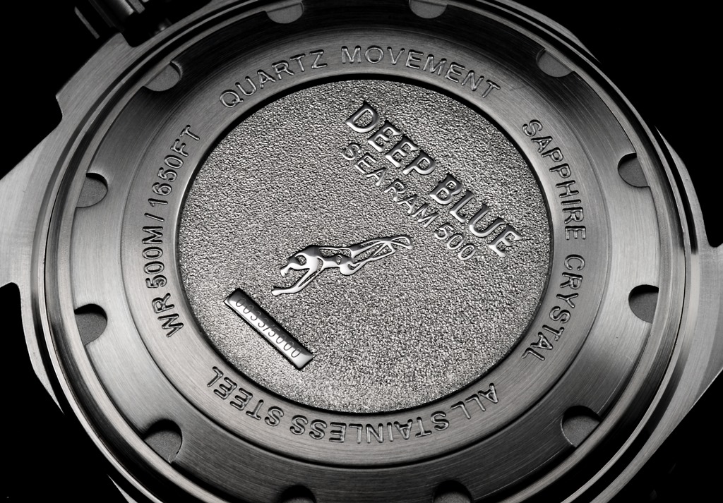 Geschützt durch ein kratzfestes Saphirglas, verbindet die Sea Ram Chronograph 500m professionelle Taucherfunktionen mit elegantem Design. Geliefert wird sie in einer Aufbewahrungsbox mit Bedienungsanleitung und Garantieschein.
