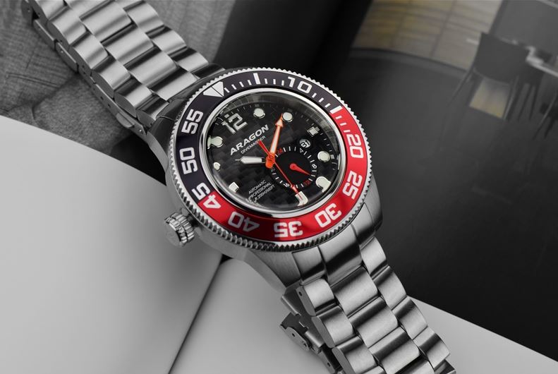 ARAGON Divemaster III 50mm Black-Red Automatic Steel Lefty