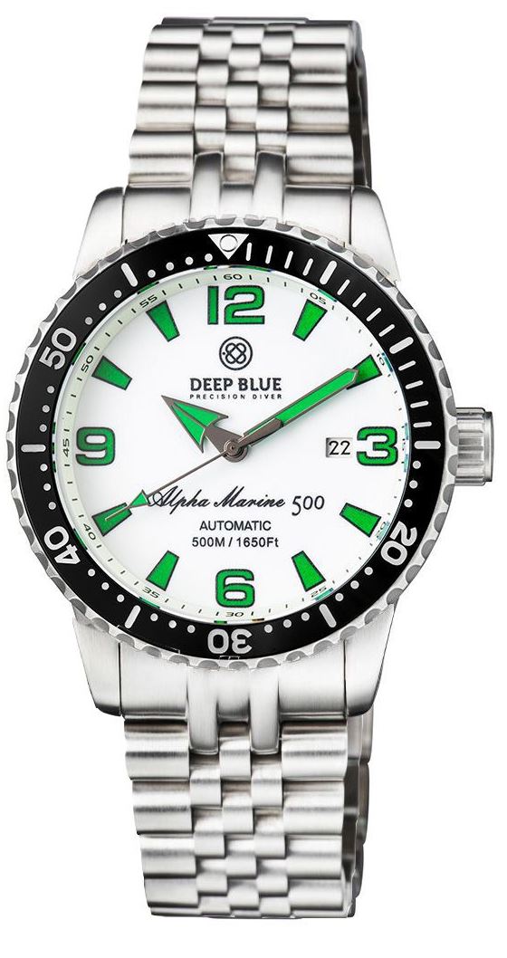 Deep Blue Pro Alpha Marine 500m 44mm Black-White Full White-Green Lume