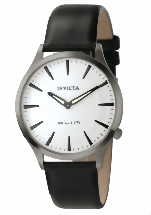 Invicta Watch Group, Quarzuhrwerk, Gehäusedurchmesser: 40 mm, Gehäusehöhe: 6 mm, Zifferblatt: Weiß, Mineralglas, Extra dünn, Edelstahl Gehäuse, Lederarmband Schwarz, 3 ATM