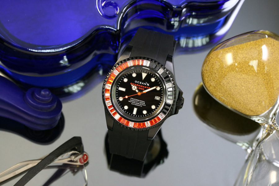 Für optimale Ablesbarkeit – auch in völliger Dunkelheit oder unter Wasser – sind die Stundenindexe, Zeiger und die einseitig drehbare Keramiklünette großzügig mit Superluminova beschichtet. Das Miyota 9015 Automatikwerk mit 24 Steinen sorgt für präzisen und zuverlässigen Lauf. Eine praktische Datumsanzeige rundet die Funktionalität ab.