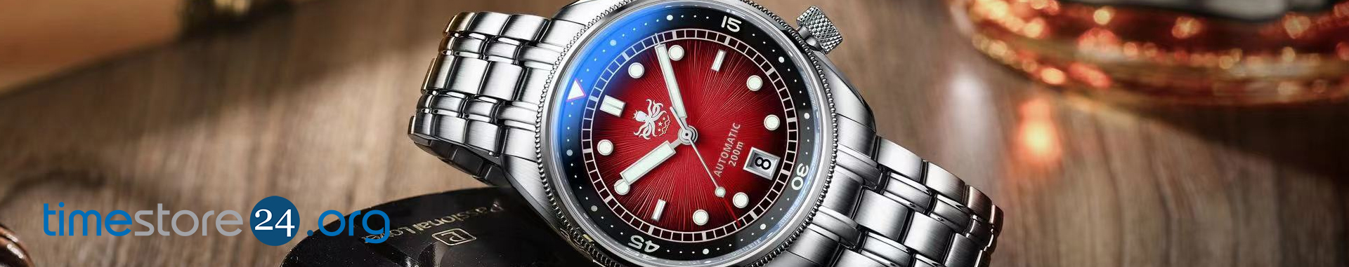 Die einseitig drehbare Keramiklünette unterstützt die präzise Messung von Tauchzeiten, während das massive Edelstahlarmband mit Sicherheitsfaltschließe sicheren Halt und hohen Tragekomfort bietet. Mit einem Gewicht von ca. 166 g vermittelt die Uhr ein leichtes, dennoch wertiges Tragegefühl.