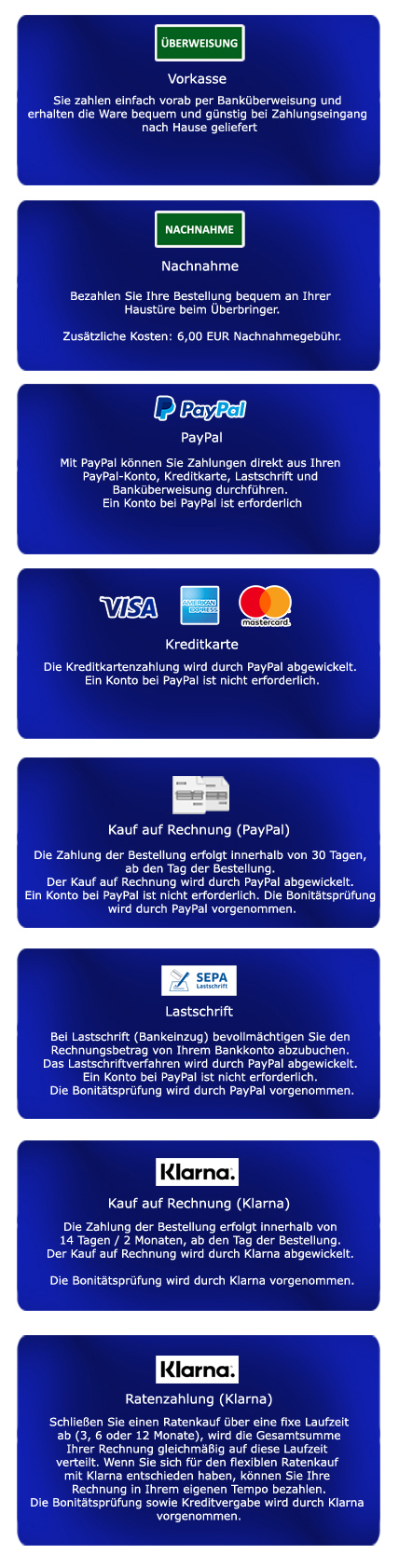 Sie zahlen einfach vorab per Banküberweisung und erhalten die Ware bequem und günstig bei Zahlungseingang nach Hause geliefert.