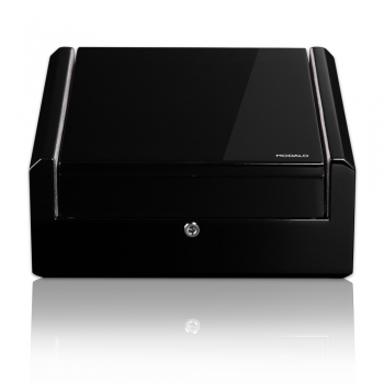 Interieur ist aus hochwertigem Velours gearbeitet. Handgefertigtes Gehäuse aus massivem neuseeländischem Holz mit Klavierlack-Lackierung.