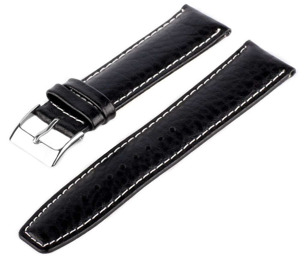 Uhren Lederarmband MB10 Genarbt Schwarz-Weiß